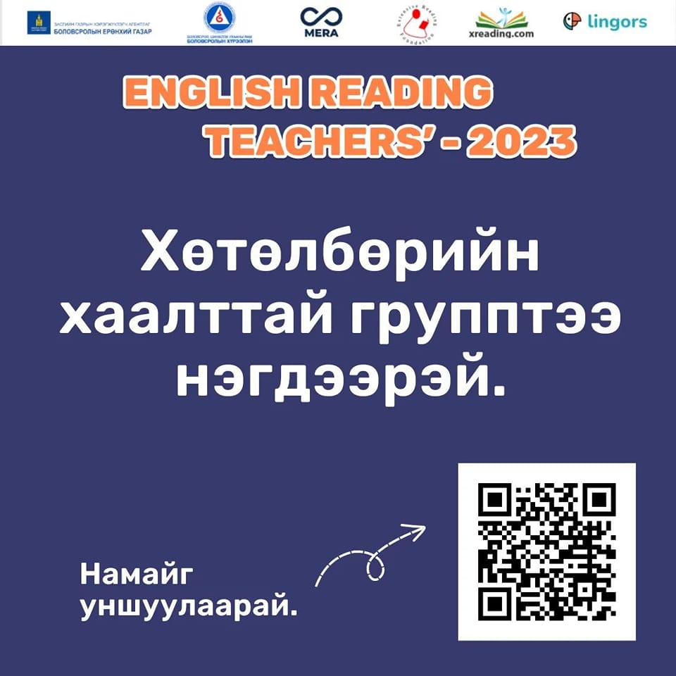 “English Reading Teachers’ 2023” хөтөлбөрийн нийт оролцогчдыг FB хаалттай групптээ нэгдэхийг урьж байна.